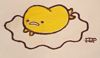 - Then, draw Gudetama’s signature grumpy face. If you need help getting it right, look at my image above.