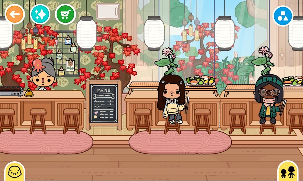 This restaurant sells dumplings, sushi platters, and matcha. My character tried wasabi on her California roll, and she did NOT recover from that experience. 🔥🌶