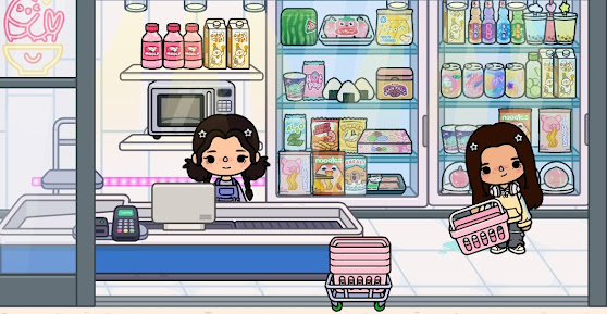 I stocked the shelves full with ramen cups, boba teas, Japanese rice balls, and mochi. My character might even work there soon! Here’s a screenshot of my build: 🍙