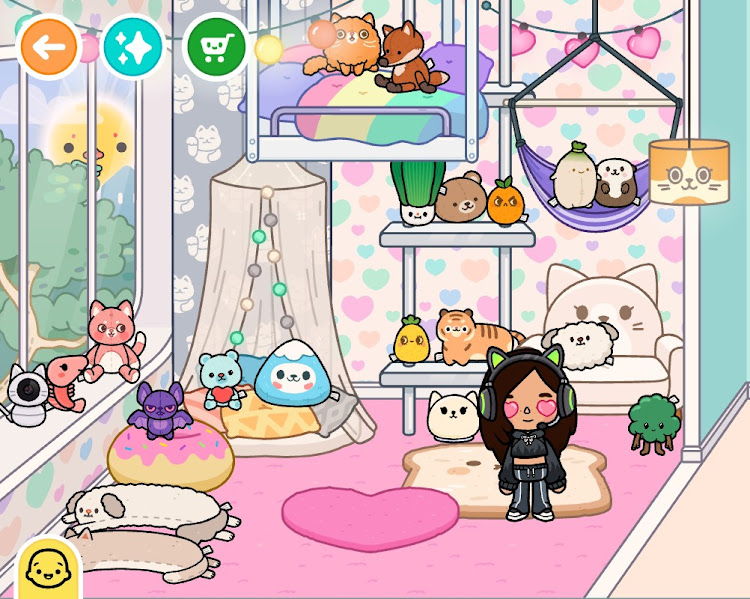 So here’s the breakdown of my latest build: a Squishmallow room! Since there aren’t any real branded Squish in Toca Boca world, I decided to use all the Stuffies and cute pillows in my inventory.😻Here’s my avatar in the room I built (I gave her a makeover to look more like me) with all her plush. I will also build a Squish Hunt store with the Fashion store, which I’ll put in the My Gallery section at the end.