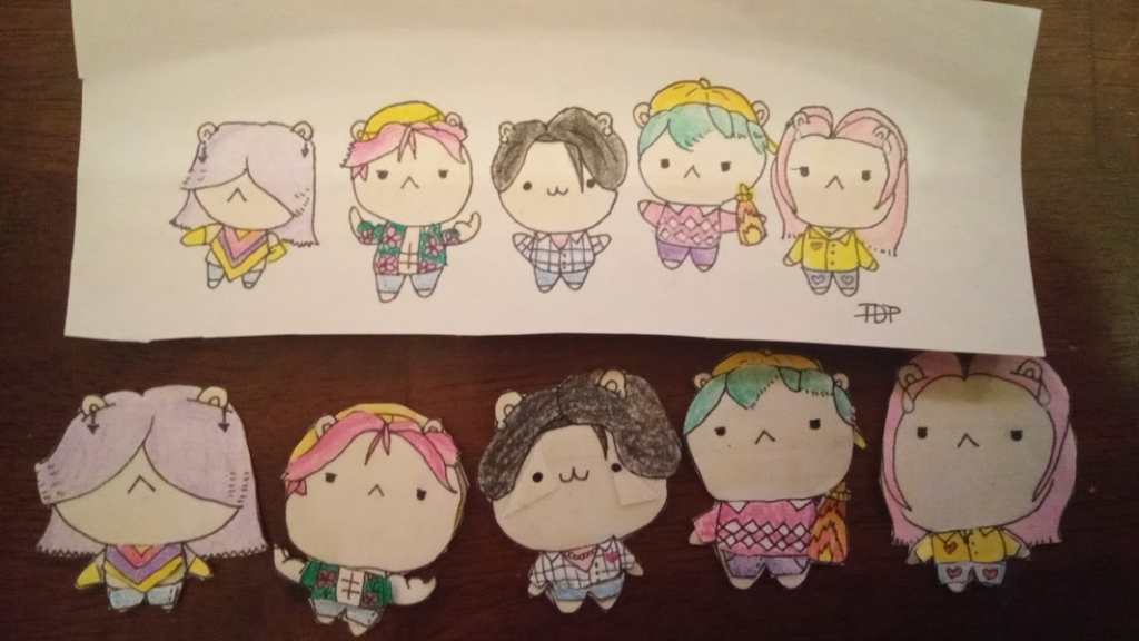 - Now, draw a kawaii smile and circular eyes. If it’s an animal, add ears and a tail (or whiskers!!!) Use the pigment liner to do this.